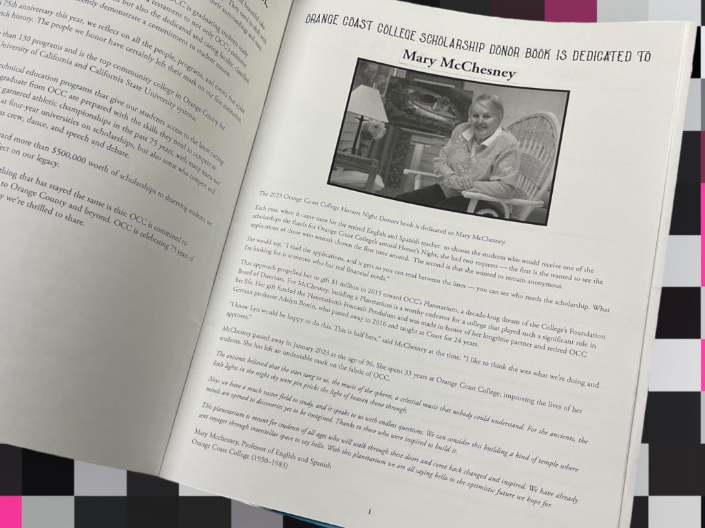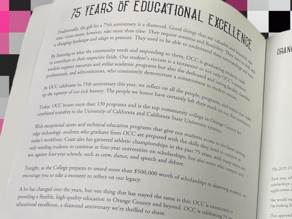 Take a peek at the very pink Orange Coast Community College Honors Night Program below.